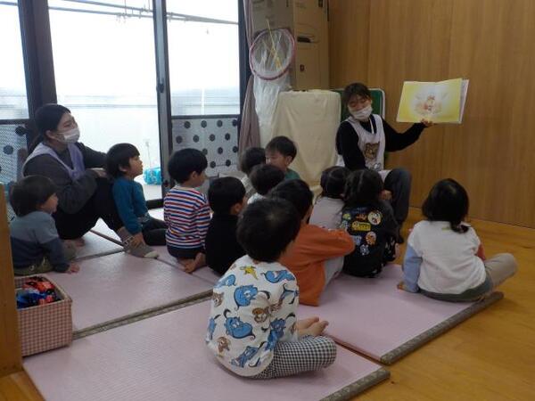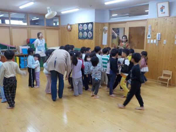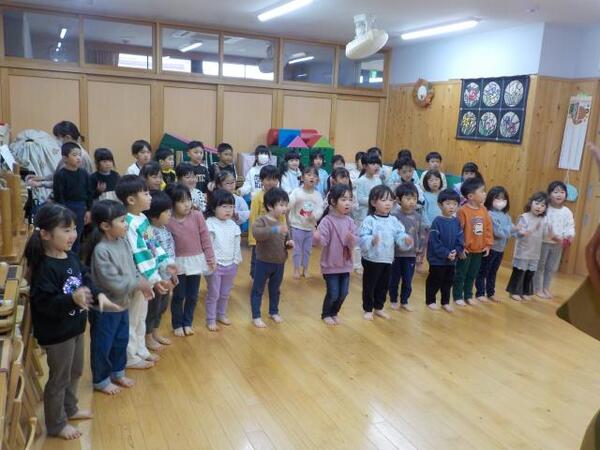 2026/03/03 ひなまつり🎎A ゆり・ひまわり組は遊戯室でひなまつりの話を聞き、♪うれしいひなまつりの歌に合わせて踊りました。その後、最後までワクワクしてクイズに参加しました。 ゆり・ひまわり組 みんなで踊ろう! 2人組に・・ ひなまつり○×クイズ